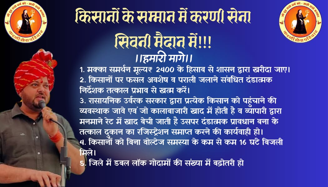 Kisan | करणी सेना | करणी सेना परिवार | ज्ञापन | समस्या | सिवनी
